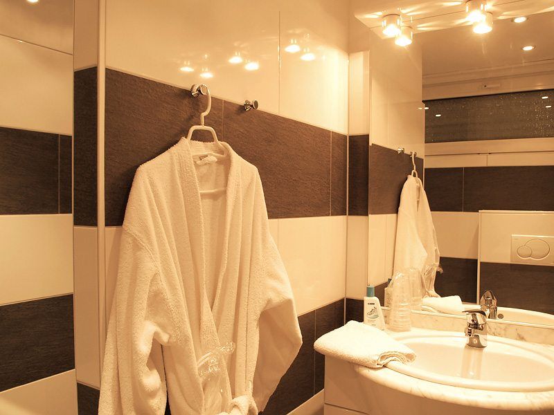 Unsere luxuriös ausgestatteten Badezimmer bieten dir weit mehr als bloße Funktionalität - sie sind kleine Wohlfühl-Oasen, die zum Durchatmen und Frischmachen einladen.