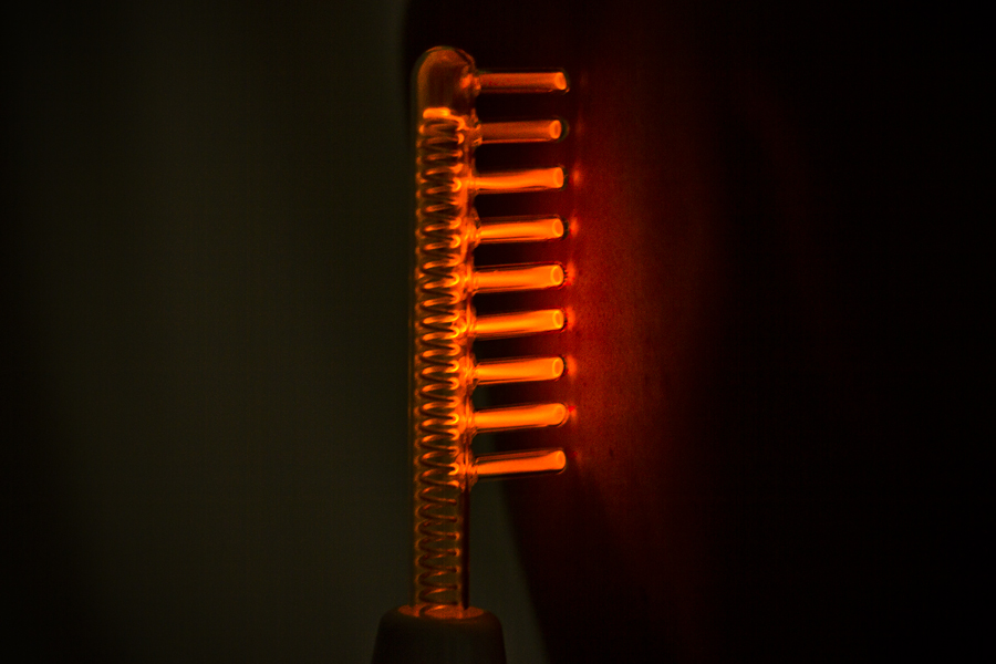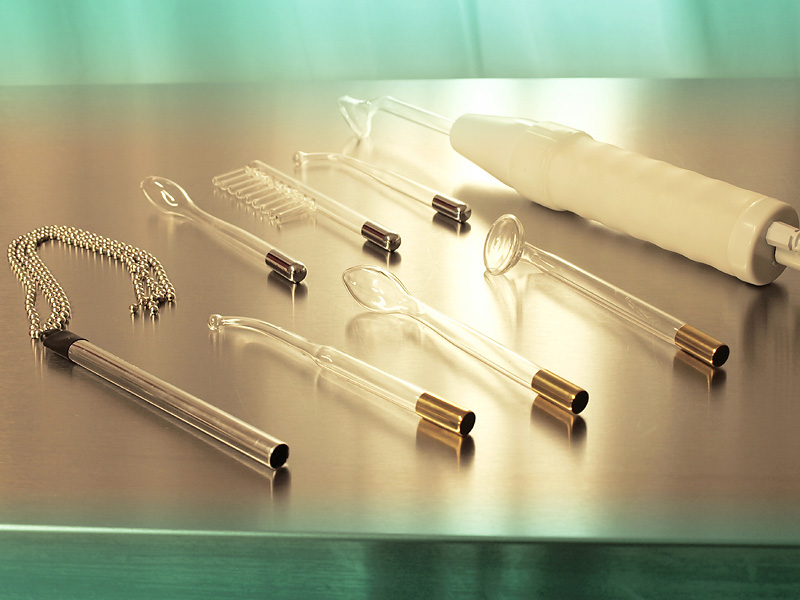Es sind Apparate, die in die Wandsteckdose gestöpselt werden und die Netzspannung in eine Hochspannung hoher Frequenz umwandeln. Diese Spannung kann bis zu 30 000 Volt betragen! Die wird nun in Form unzähliger kleiner Funken auf die Haut übertragen. Durch die hohe Frequenz der Hochspannung tritt ein Phänomen auf, der sog. Skin-Effekt.
